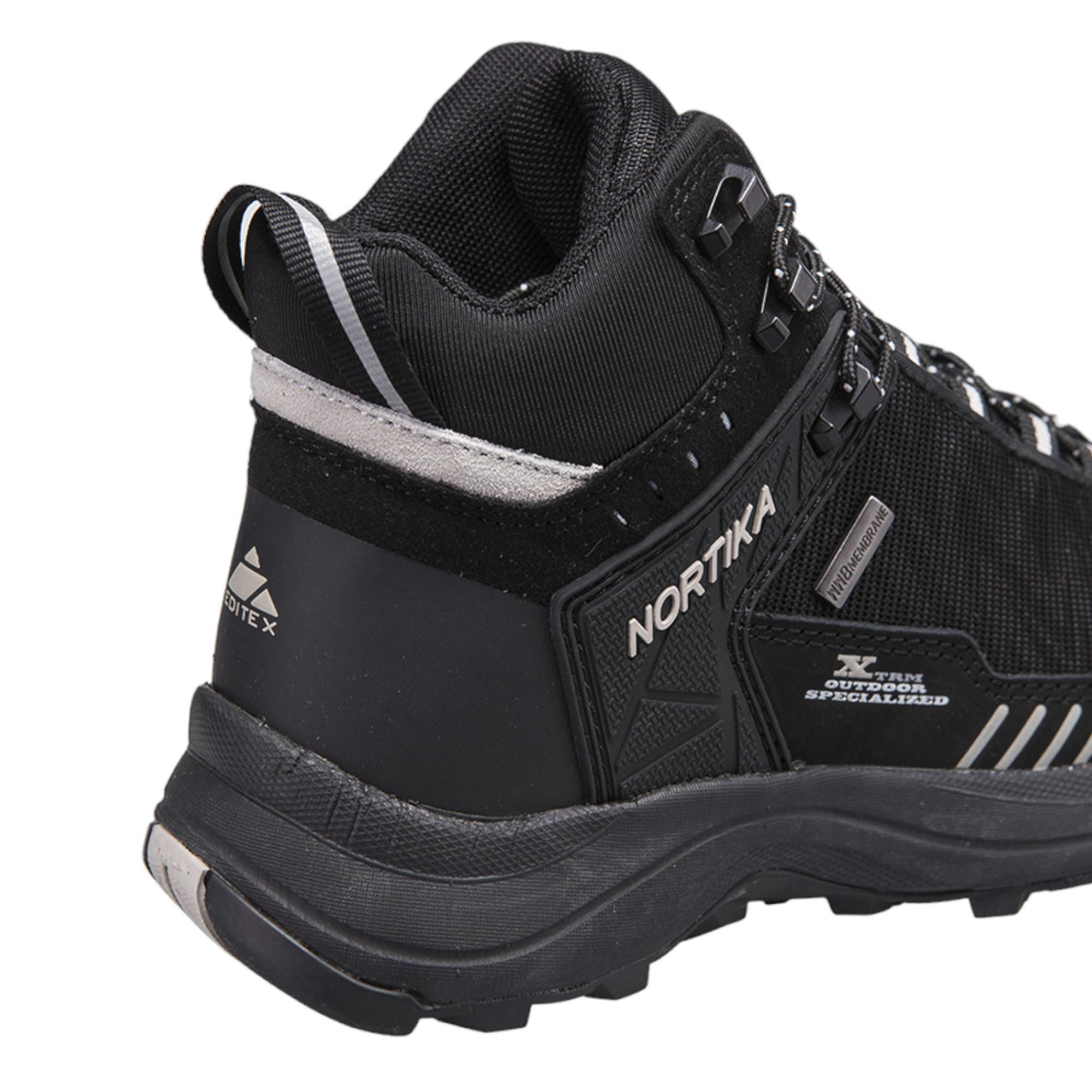 Современная компоновка и качественные материалы делают ботинки Editex Nortika отличным выбором для пеших походов, а тёмный дизайн позволяет носить их на городских улицах. Верхний слой ботинок состоит из комбинации текстиля и нубука, обеспечивая высокие износостойкие характеристики, что в сочетании с водоотталкивающей пропиткой защитит ноги владельца от промокания. Мембрана, выполненная по технологии Waterproof Windproof Breathable (WWB), наделяет ботинки не только влагозащитными свойствами, но и обеспечивает высокие ветрозащитные характеристики, ослабляя поток ветра за счёт микроскопических пор, а за счёт воздухопроницаемости ботинки сохраняют комфортный микроклимат внутри. Изделие оборудовано усилением носка и пятки, тем самым защищая ноги владельца от ударов об неровности. Специальная стелька OrthoLite сохранит комфортные условия для ног за счёт антимикробной пропитки, что позволяет предотвратить образование неприятного запаха и обеспечит вентиляцию стопы ног. Ботинки создают эффективное распределение нагрузки при ходьбе за счёт подошвы Ultra Slip Protection (USP), а развитый рисунок протектора создаёт максимальное сцепление с поверхностью со сложным рельефом. Специальные светоотражающие вставки позволяют быть заметным в тёмное время суток. Надёжную посадку на ноге обеспечивается за счёт качественной шнуровки на крепких петлях, позволяя ботинкам надёжно держаться в самых сложных условиях. Использование современных материалов позволило создать обувь для самых разных условий, обеспечивая высокую степень износостойкости, в результате чего сохраняя свою форму и цвет после длительного ношения. Утилитарный чёрный дизайн с использованием белых вставок позволяют носить ботинки как во время походов, так и в городе, отлично сочетаясь с различными элементами одежды.Характеристики: