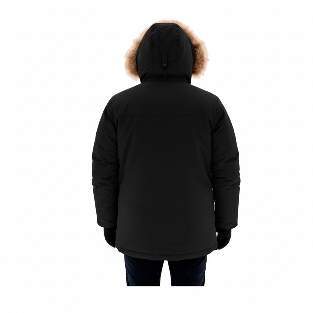 ДИКСОН – поселок городского типа, в котором находится самый северный порт России. Расположен на побережье Енисейского залива и на острове Диксон.Мужская пуховая куртка прямого свободного силуэта с внутренней регулировкой по талии, спинке и низу. Длина куртки до середины бедра. Удлиненная спинка хорошо удерживает тепло. Множество деталей дополнительного утепления создают комфортный микроклимат внутри пуховики. Анатомический крой в области плеч и рукавов позволяет свободное движение плечей и рук в стороны и вверх. Втачной капюшон-тубус регулируется по ширине и глубине, имеет отстегивающуюся опушку из меха енота. Модель предназначена для низких температур, сопровождающихся ветром и снегом.