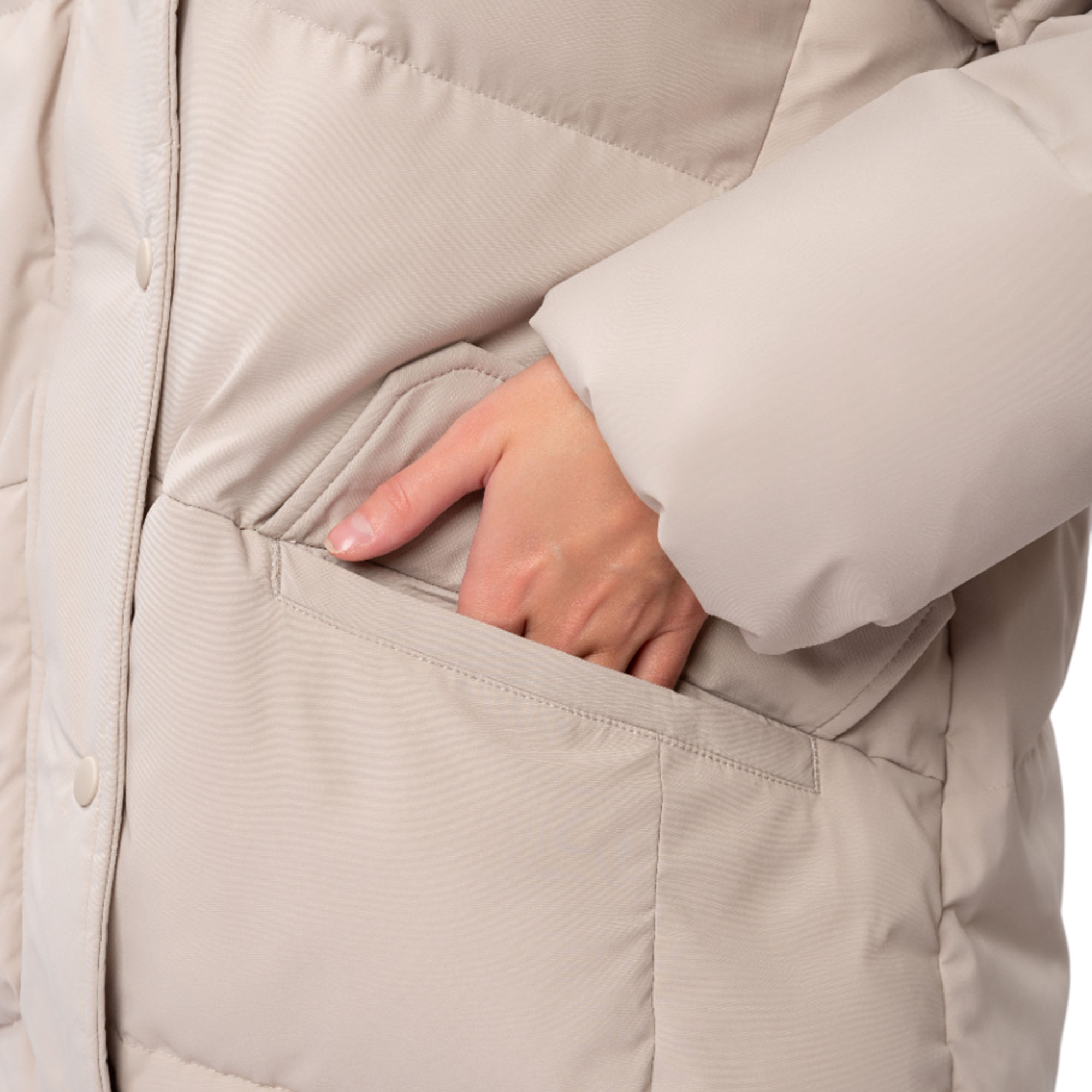 Сочетая в себе функциональность и стиль женская зимняя куртка WHSROMA станет идеальным выбором для любительниц активного отдыха и повседневных дел в холодное время года. Изготовленная из прочной курточной мембранной ткани на основе полиэстера, куртка обеспечивает высокий уровень комфорта и защиты. Водоотталкивающая и антибактериальная обработка материала гарантирует сохранность тепла и сухости в условиях мокрого снега и ледяного дождя. Дополнительную защиту от холода обеспечивает утеплитель DuPont ball cotton с плотностью 230 г/кв.м, который способен сохранять тепло при температурах до -30 °C. Дизайн куртки подчеркивает женственность и утонченность образа. Регулируемый несъемный капюшон, воротник-стойка и снегозащитная юбка эффективно защищают от проникающего ветра и снега. Боковые и нагрудный карманы на молнии позволяют безопасно хранить необходимые мелочи и гаджеты. Куртка WHSROMA – это оптимальное решение для тех, кто ценит сочетание практичности, комфорта и элегантности и идеально подходит для занятий сноубордингом, походов на свежем воздухе или просто для повседневного использования в зимний период.Особенности и характеристики: