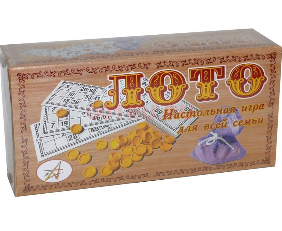 Занимательная настольная игра, о которой знает и ребенок и взрослый. Благодаря ей Вы тренируете память и развиваете внимательность. В набор входят 24 карточки, пронумерованные от 1 до 90 бочонки в мешочке и фишки, которыми необходимо закрывать дубли. Играть можно как большой компанией, так и вдвоем. Для игры необходимо выбрать водящего, который перемешивает бочонки в мешке, и вытаскивает по одному, называя номер. Если игрок на своей карточке находит названое число, то закрывает его бочонком с соответствующим номером. Если названое число попалось на карточках нескольких игроков, то они закрывают числа фишками. Такой вариант времяпрепровождения позволит Вам провести отличный вечер в кругу семьи. Так же лото в красивой расписной коробке, отличный подарок-сувенир.