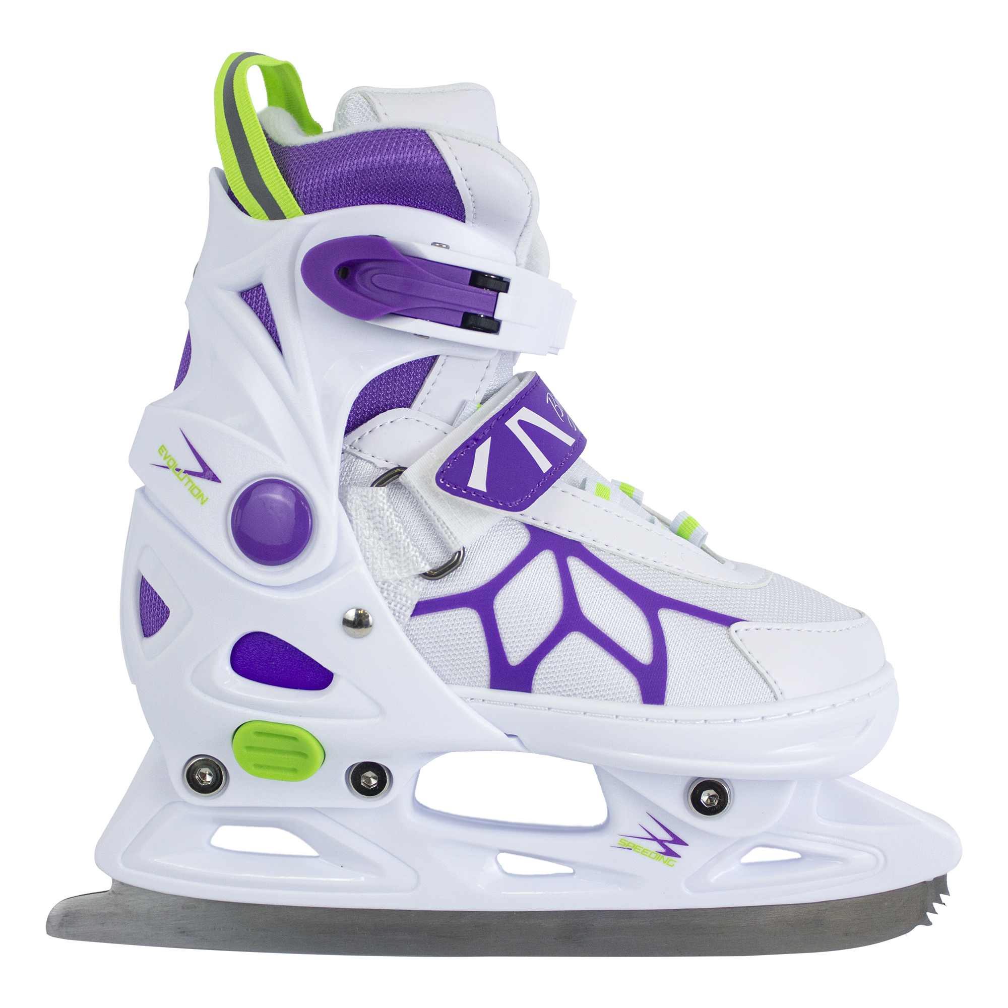 Чтобы получить удовольствие от катания, необходимо выбрать качественные фигурные коньки. Они должны плотно облегать голень, нога зафиксирована в одном положении без возможности хода вперёд или назад. Раздвижные коньки BIG BRO станут отличным приобретением для тех, кто хочет научиться искусству катания на льду. Удобный ботинок выполнен из искусственной кожи, синтетической ткани и армирован каркасом из прочного пластика. Благодаря пластиковой раме ноге передаётся меньше вибраций при катании. Внутренний текстиль позволяет сохранить комфорт и тепло во время катания. Жесткая подошва гарантирует плотную фиксацию ступни и оберегает от травм. Коньки оснащены надёжным механизмом застёгивания: шнуровка, клипса с фиксатором и липучка. Лезвие из нержавеющей стали обеспечивает наилучшее скольжение конька по льду. Модель регулируется в диапазоне 4-х размеров. Это очень удобно, так как отпадает потребность каждый год приобретать новые коньки ребенку.